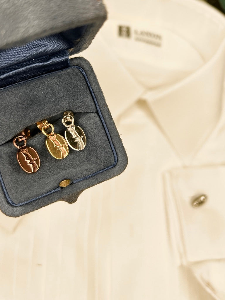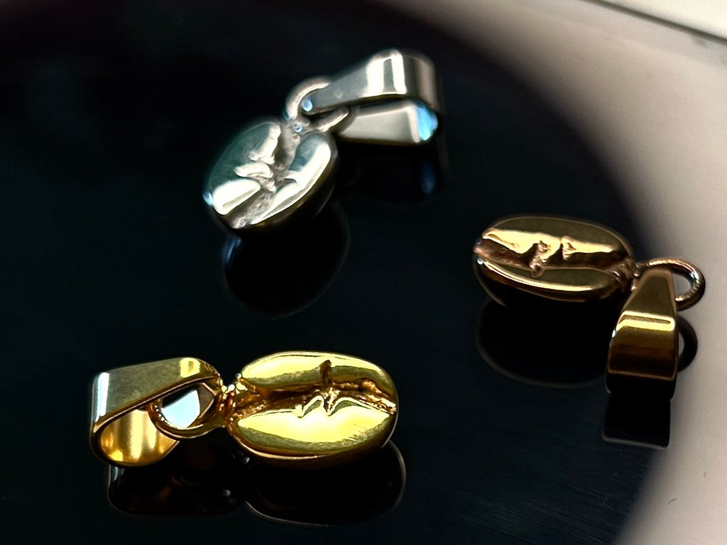 Do you love Coffee or know someone hard to shop for who loves Coffee...Then here you have a Custom Coffee Bean Pendant...For sale a Single coffee bean pendant.. (actual coffee bean size) This coffee bean pendant can be great to add onto a necklaces, a charm bracelets, add to anything. Buy one or Buy more. Made in Stainless steel the pendants come in 3 different colours, silver, gold, and coffee colour (the trio colours like Cartier). (Vintage Lanvin shirt not included) Moulded from a real coffee bean!!!